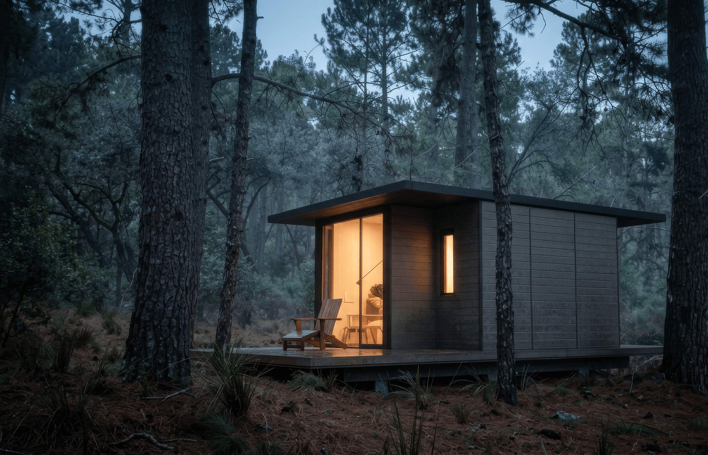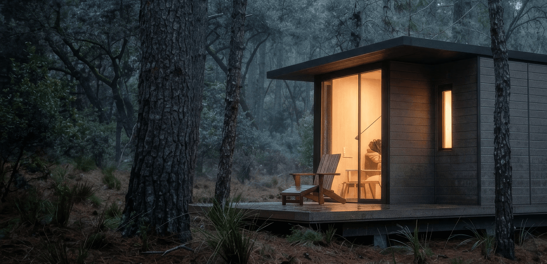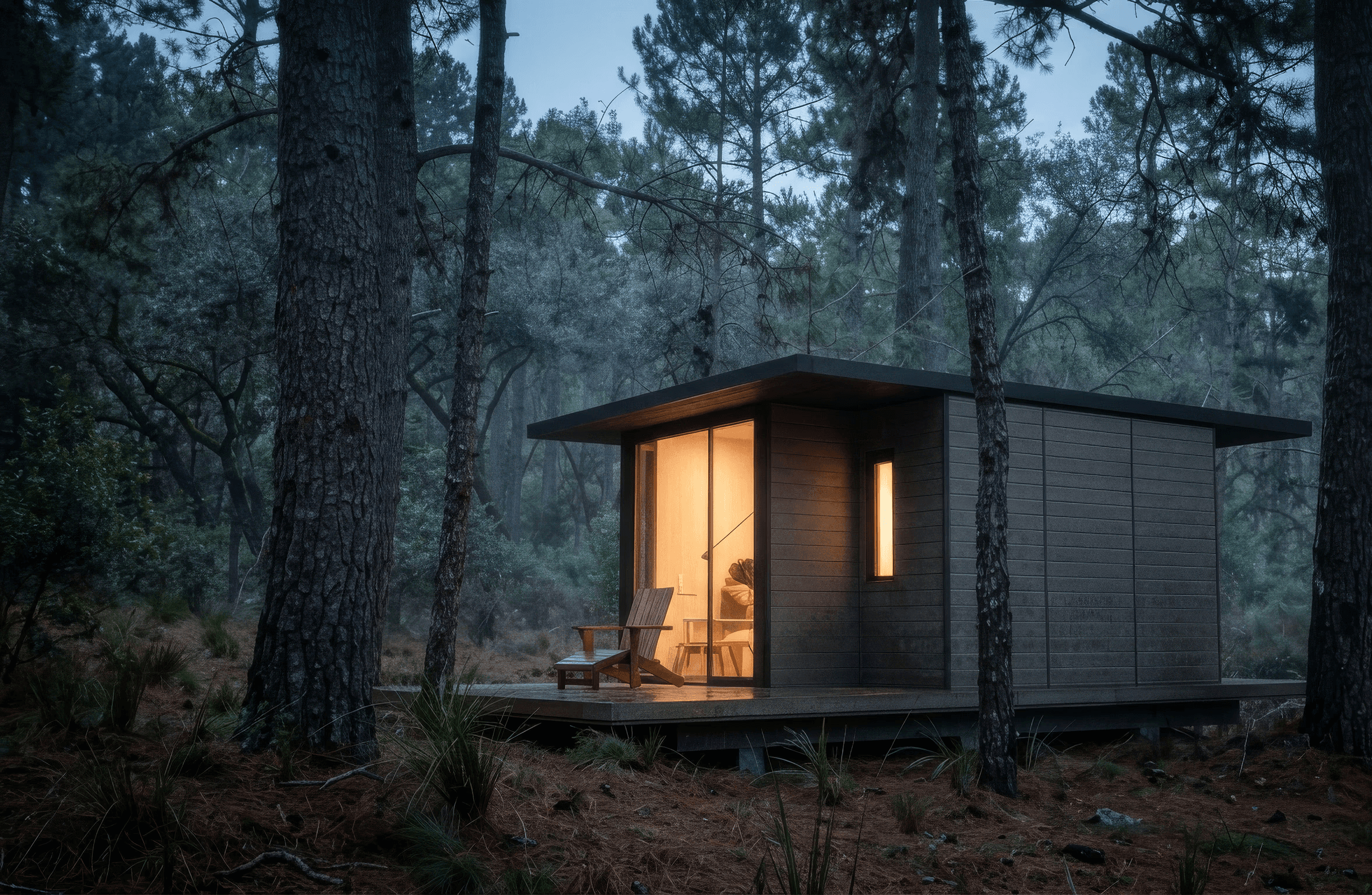 Una cabaña pensada para integrarse al bosque y dejar que la naturaleza marque el ritmo.