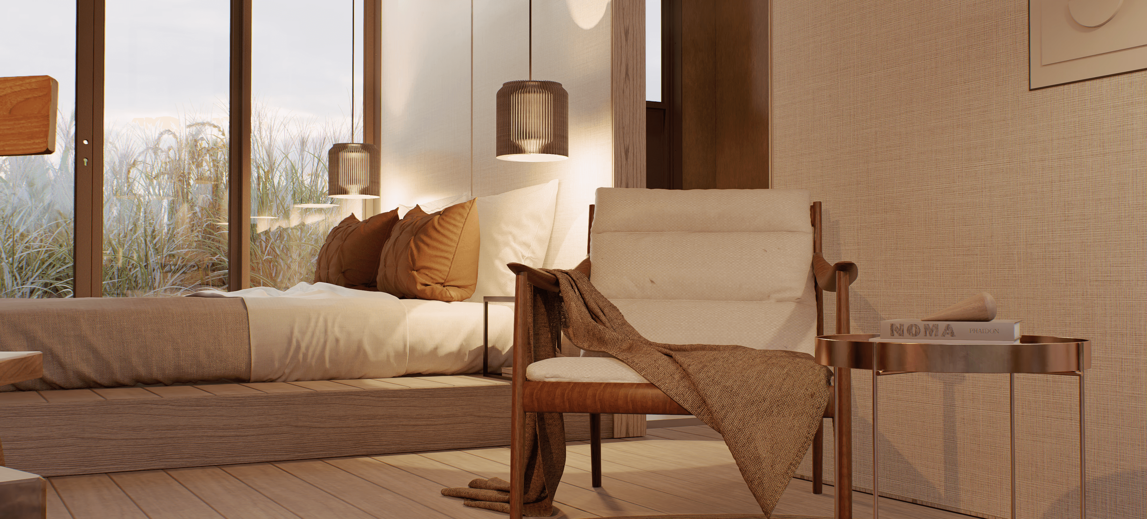 el paisaje, luz natural que transforma el interior y materiales cálidos